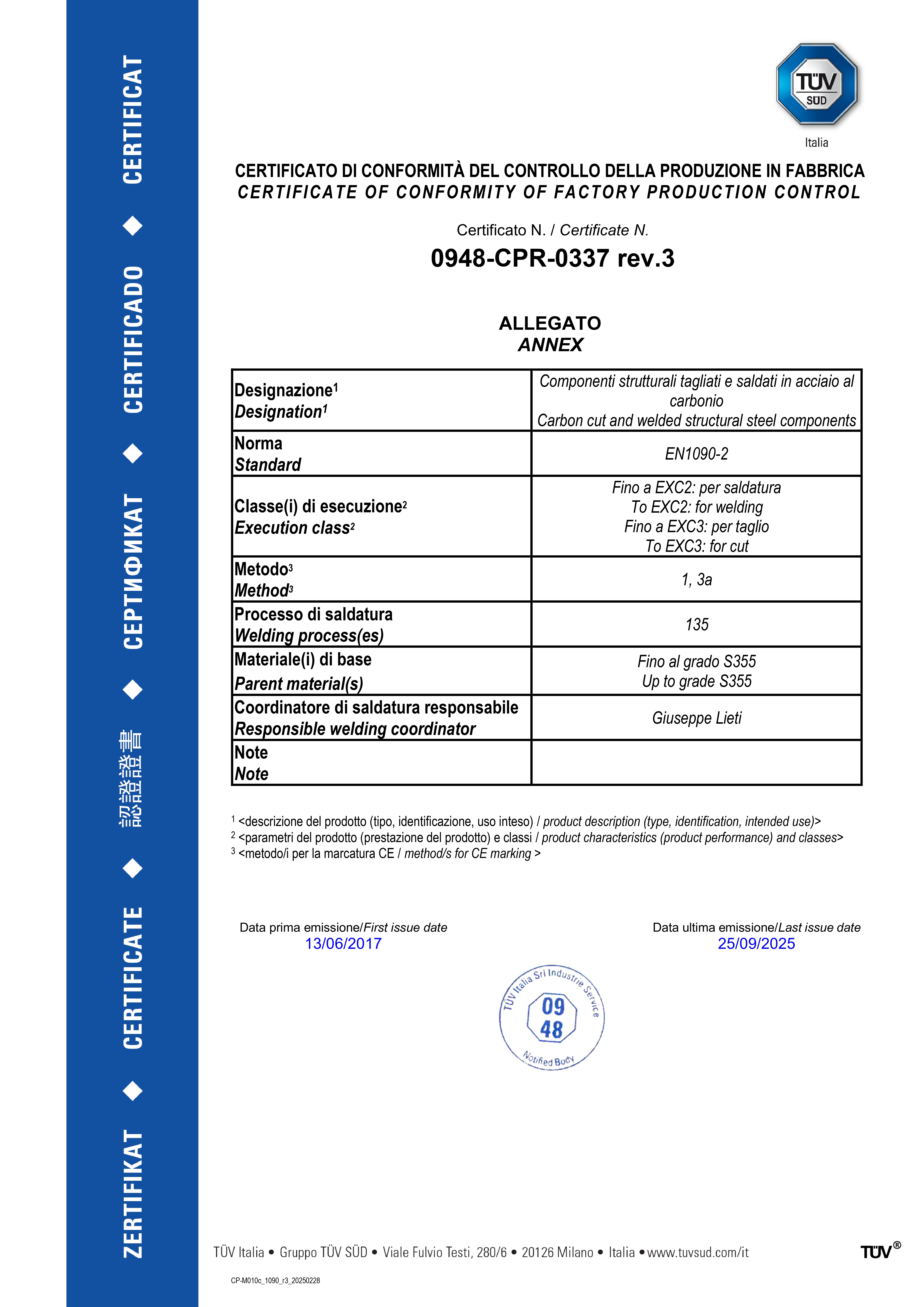 Nonostante la giovane età la nostra realtà può vantare la cerificazione ISO 9001 e la certificazione EN 1090 per PRODOTTI METALLICI PER IMPIEGHI STRUTTURALI e la certificazione EN 1090 per il TAGLIO TERMICO. |